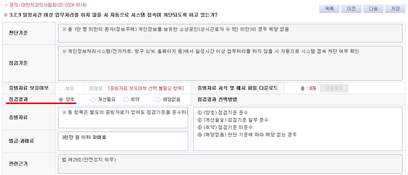 ÀÚÀ²Á¡°Ë °ü·ÃÇ׸ñ¿¡¼­ ÁõºùÀÚ·á º¸À¯¿©ºÎ´Â 'º¸À¯' , Á¡°Ë°á°ú´Â '¾çÈ£'¿¡ üũÇÕ´Ï´Ù.
